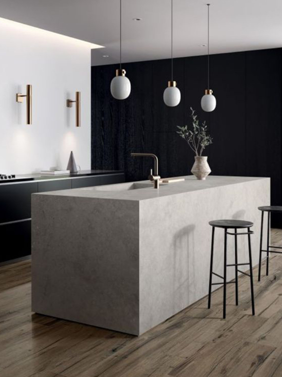 Albul este o reflecție a luminii și induce starea de relaxare, pe când negrul este prezent de obicei în elementele mobile de decor, mai puțin în cele fixe și oferă o senzație de sofisticare. Griul este rezultat din amestecul albului cu negrul si completează decorul minimalist prin excelență. El aduce diversitate unei încăperi fără să afecteze armonia la nivel cromatic.