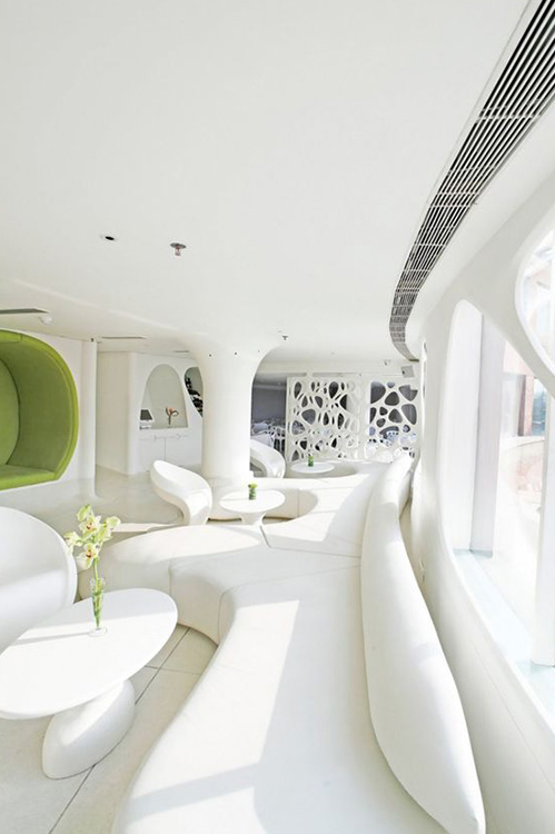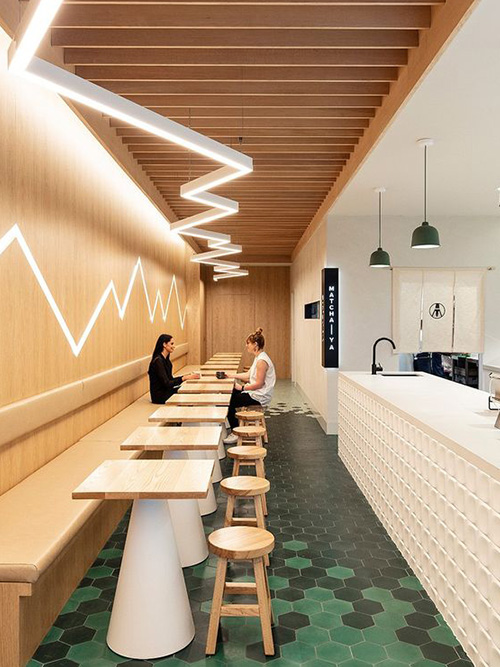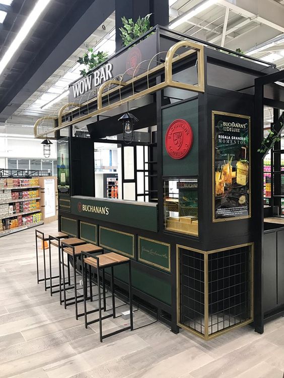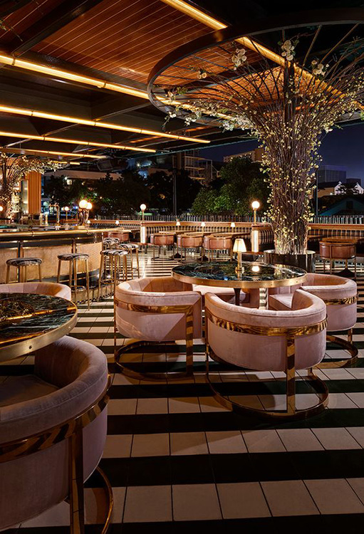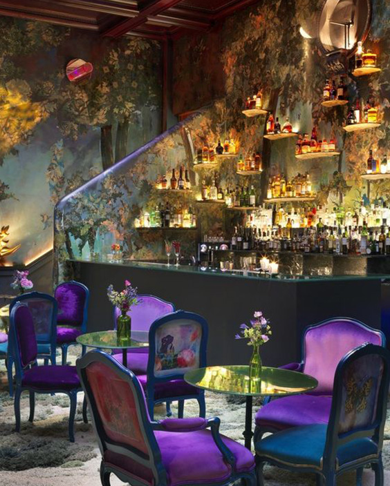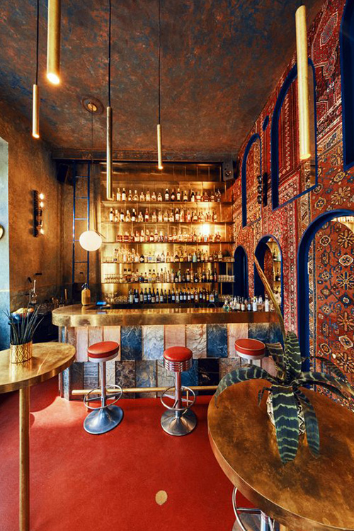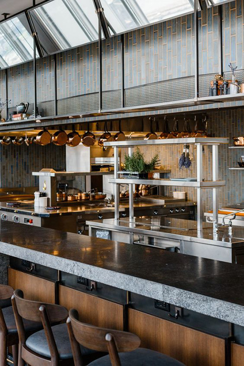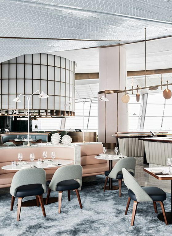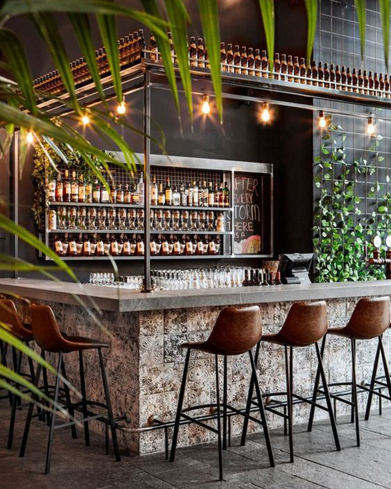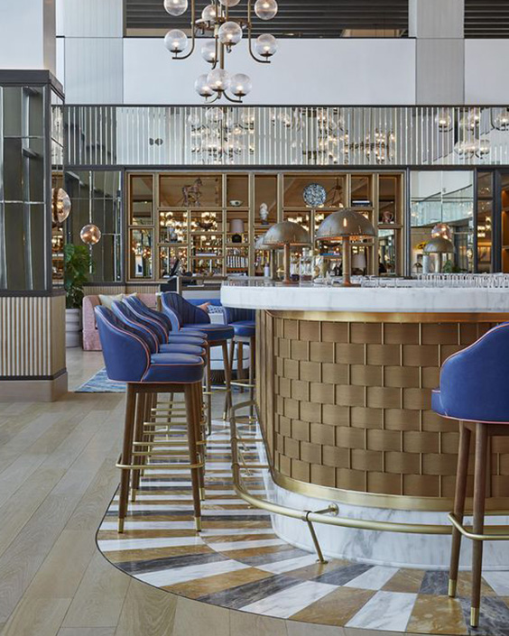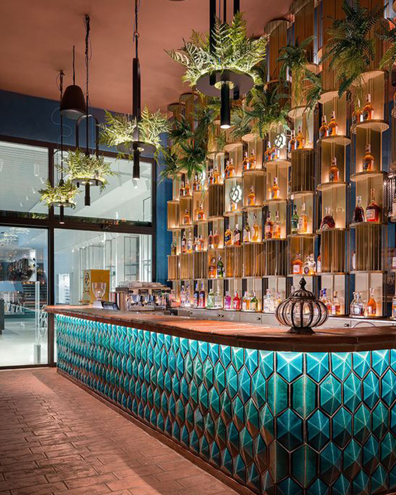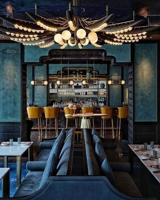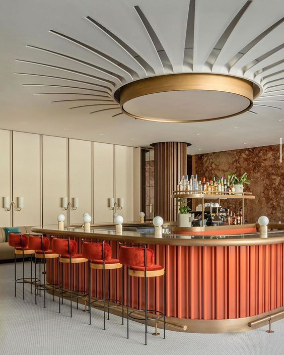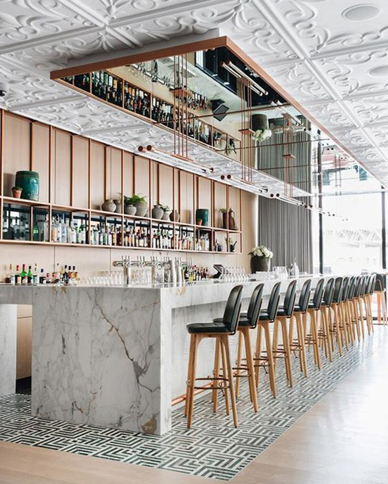 Barurile din centrul restaurantului sunt caracteristice stilurilor modern și eclectic și permit fluxului de angajați să circule mai ușor, iar barurile plasate în spatele restaurantului sunt intime, departe de agitația restaurantului.